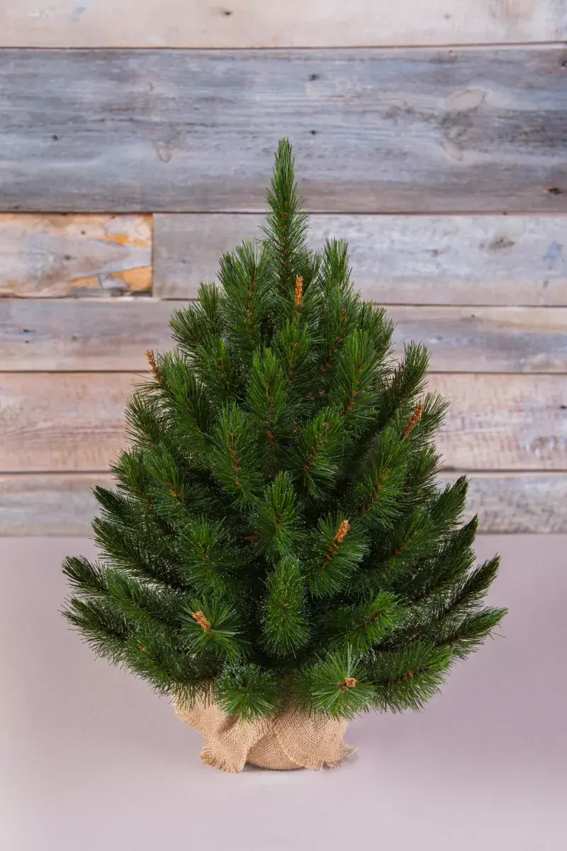 Сделано по современным технологиям лучшими специалистами сферы новогодней продукции. Основной материал - это полимерная леска PVC. Из нее получаются самые красивые сосны, правдоподобно передающие красоту натуральной хвои. Смотришь на елочку и, кажется, будто переносишься из большого города в какой то сказочный лес, тихий и спокойный. У изделия необычная подставка, она сделана из натурального дерева, обернутого в декоративную мешковину. Смотрится очень современно и оригинально.