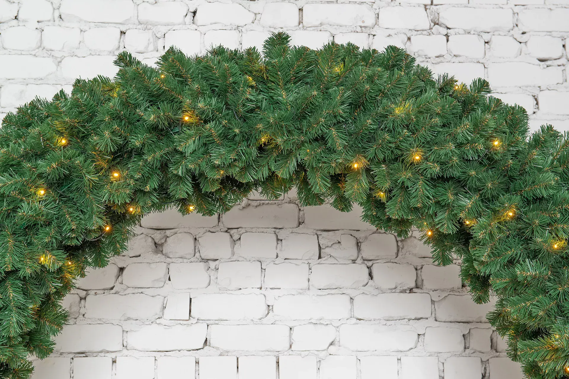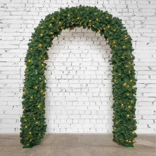 Великолепная хвойная арка Ларец Любви со встроенными Led лампами теплого-белого свечения окутает ваш интерьер праздничным настроением и подарит окружающим настоящую сказочную атмосферу. Арка имеет очень пушистую и густую хвою, которая выполнена из мягкой пленки PVC. Модель состоит из трех частей - 2 штанги и верхняя перекладина, которые с легкостью монтируются между собой, а встроенная гирлянда соединяется с помощью коннекторов. Варианты использования довольно большие - входная группа, дизайнерское оформление помещения, оформление беседок, ландшафтов.