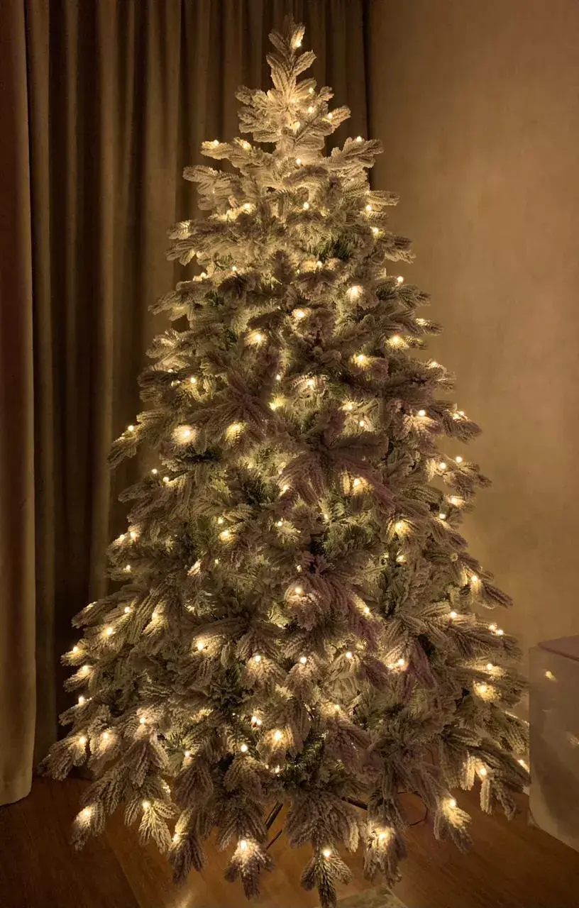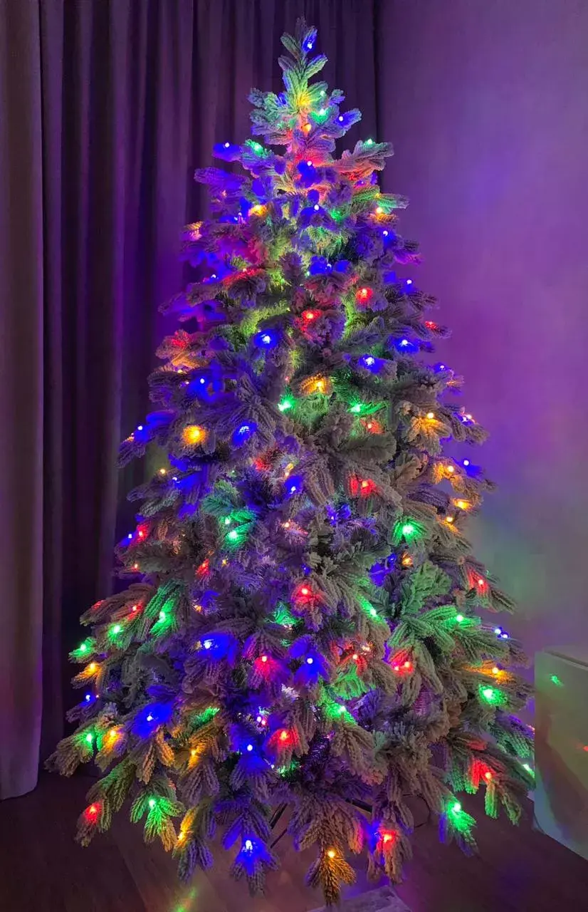 Уникальная заснеженная елка Аляска со встроенной Led гирляндой премиум класса - несомненная топ модель нашего ассортимента. Она искусно создана нашими мастерами, каждая веточка в точности напоминает настоящий еловый лапник, а искусственный снег покрывает их принося ощущение морозного леса. Одна из главных особенностей модели, является встроенная разноцветная Led гирлянда, которая совмещает в себе два полноценных самостоятельных режима свечения - разноцветный (мульти) и теплый белый, оба имеют 8 режимов динамики, также есть режим статического свечения.