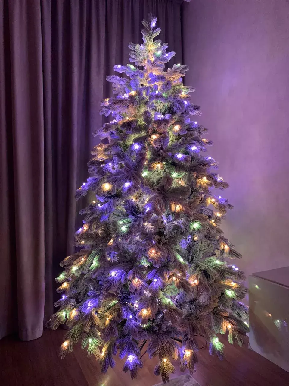 - Встроенная электрогирлянда 2 в 1 (теплый белый и разноцветный)
