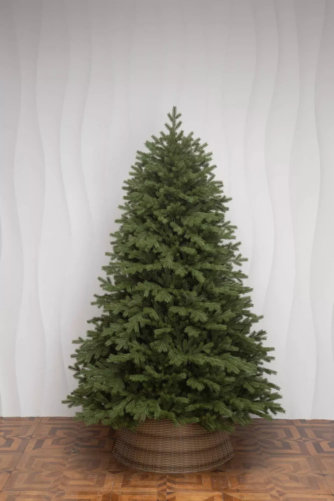 Грандиозная модель высотой 210 см с впечатляющим диаметром кроны станет настоящим центром праздничного торжества в вашем доме. Выполненная из 100% литой хвои премиум-класса, она поражает своей натуральностью и пышностью - каждая веточка тщательно проработана, создавая эффект живой, только что принесенной из зимнего леса ели.