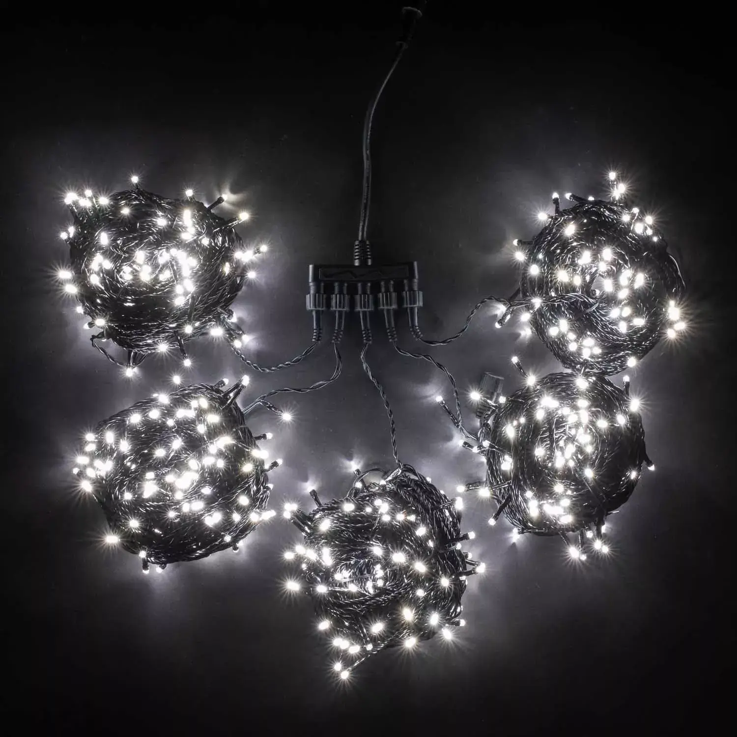 Комплект гирлянд для деревьев LTC состоит из 5 нитей длиной 20 метров, разветвителя 5 лучевого, трансформатора 80W на 24V. Степень защиты данного комплекта IP44, что позволяет использовать данный комплект при температуре до -30оС. Для удобства монтажа, комплекта, при отрицательных температурах рекомендуется разогреть комплект в помещении. Комплект готов к использованию, дополнительные аксессуары для работы не требуются.