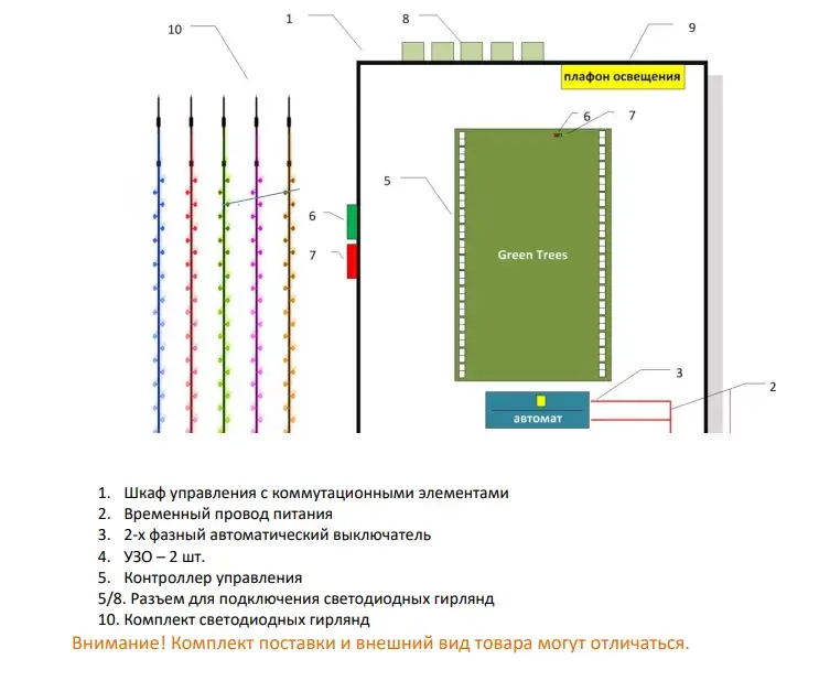 Светодиодный комплект Хамелеон RGB отнесен к категории премиум-класса. Он подходит для уличных и интерьерных елей высотой от 4 до 20 метров и смотрится одинаково эффектно, как в помещении, так и на площади перед зданием. Количество размещаемых на ели гирлянд напрямую зависит от ее высоты. Освещение «Хамелеон» RGB - трехцветная гирлянда (красный, зеленый, синий) - переливается разными цветами как хамелеон. Подключается к специальному контроллеру.