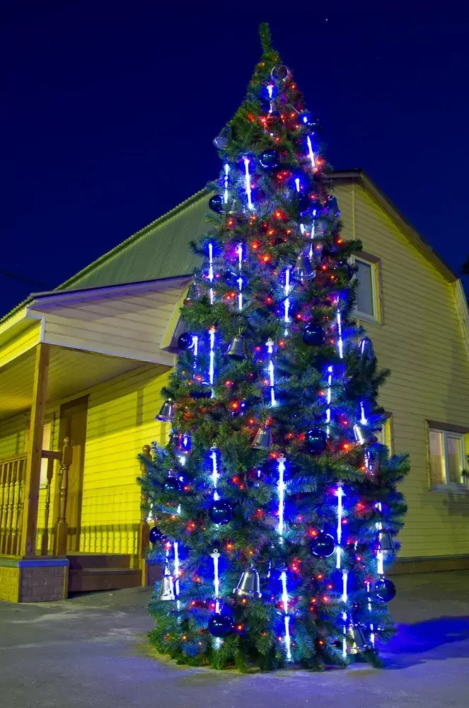 Многофункциональный комплект освещения «Тающие сосульки» представляет собой устройство для придания особого эффекта новогодним елкам, а также различным декоративным изделиям, используемых при оформлении витрин, праздничном оформлении деревьев, кустарников, зданий. Гирлянда подходит для всех типов елей от 3 до 30 метров высотой. Благодаря плавным переливам света, включенная гирлянда создает эффект тающих сосулек.