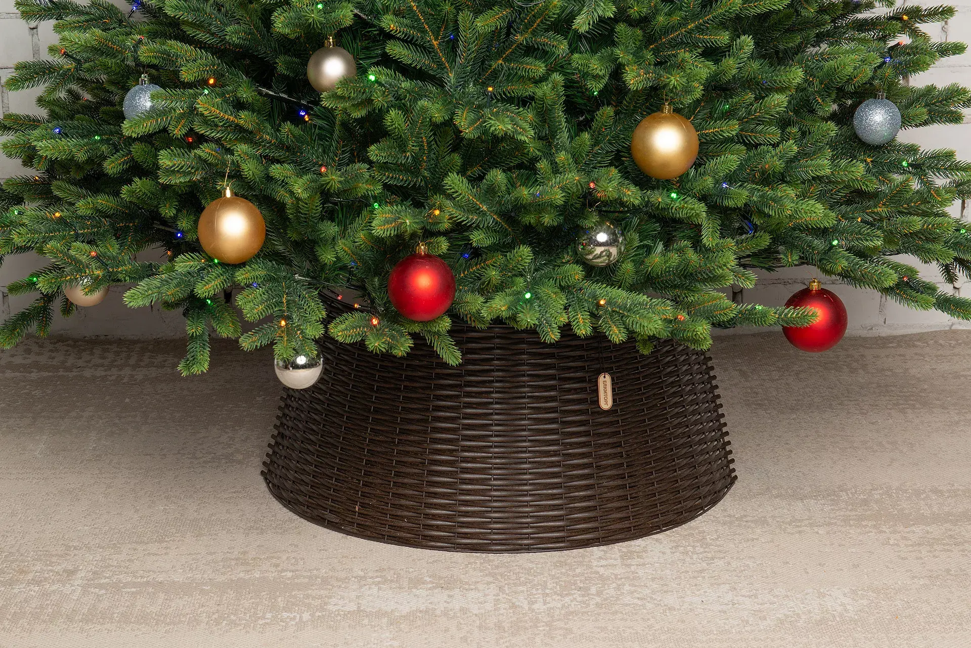 Любите черный цвет, но считаете его слишком мрачным и скучным для новогодней ночи? Мы предлагаем вам стильный вариант – оттенок дуб омбре. Разборная корзина под новогоднюю елку «Царская Лоза» этого элегантного цвета не оставит равнодушным ни одного гостя. Изделие выглядит невероятно эффектно, но на этом его достоинства не заканчиваются. Корзина на удивление легко собирается и устанавливается. Прутики, из которого она сплетена, отличаются высокой прочностью. Благодаря этому ваша елка будет радовать глаз не один год. Диаметр изделия – 87 см. Каждая корзина упакована в стильную сумку.