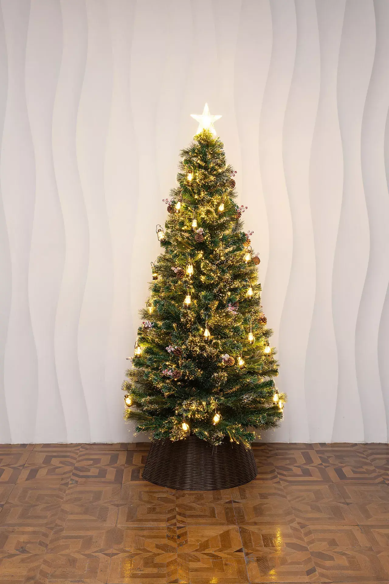 Чудо-елка Рождественские огни 240 см., увенчанная сияющей золотой звездой, пожаловала к вам из сказочного леса. Она так и манит своей густой кроной, украшенной лампочками в стиле ретро с завораживающими теплыми огоньками. Пышные веточки формируют стройный силуэт, выглядит благородно. Эффектный новогодний наряд главной героини праздника дополнен припорошенными инеем шишками и гроздьями алых зимних ягод. Ну, а ее естественный внешний вид – весомый плюс к торжественному образу. В комплекте контроллер для переключения 8 режимов свечения.