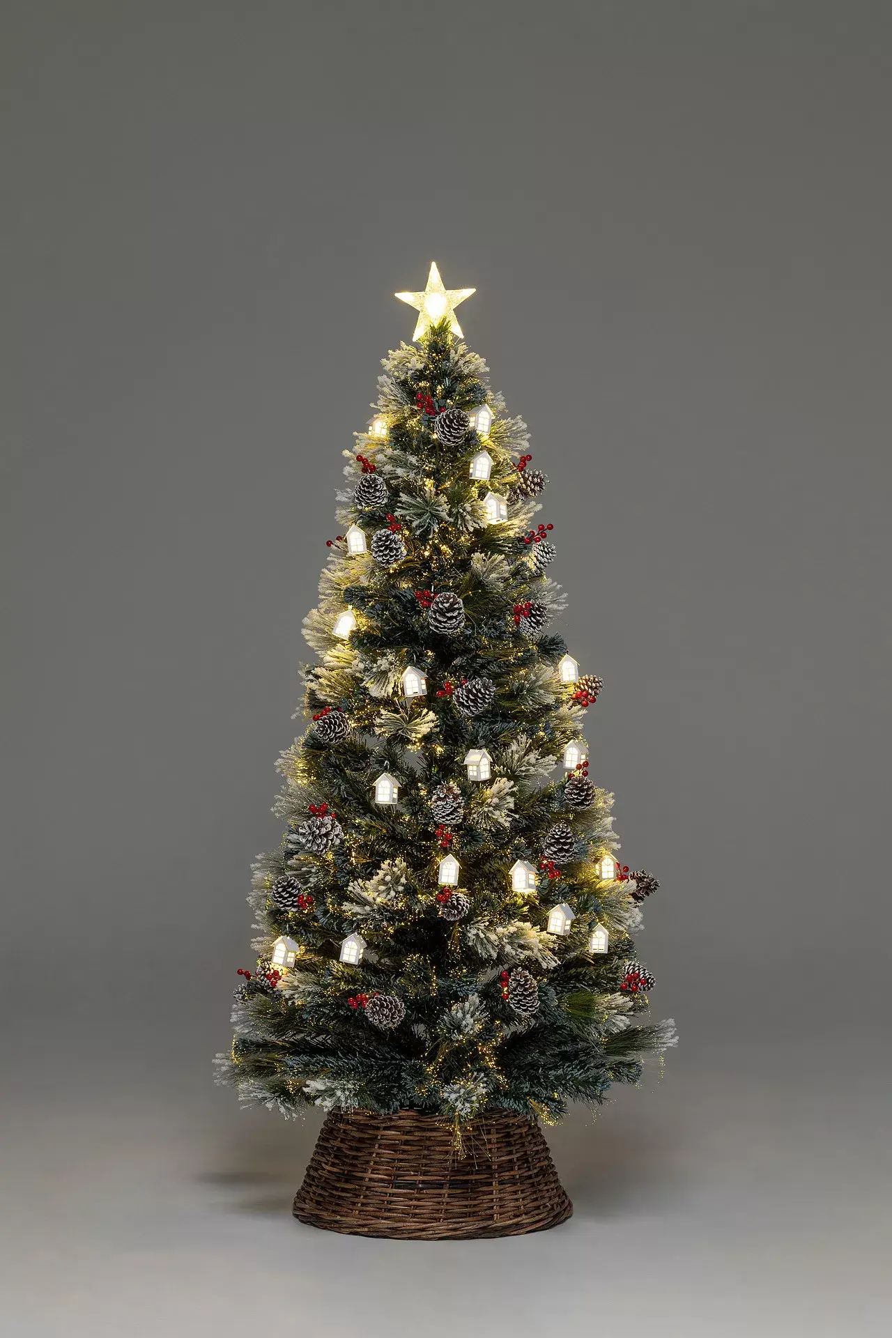 Светодиодная елка Сказочная 150 см. с натуральными шикарными шишками сияет всеми цветами радуги, создавая новогоднее настроение и тепло в вашем доме. А милый декор в виде уютных светящихся домиков и пронзительно-красных гроздьев рябины придаёт красавице особый шарм. Она просто создана для того, чтобы дарить праздник и вселять в сердца людей веру в прекрасное будущее. Мы готовы поспорить: если эту пушистую леди поместить в сугроб, никто даже не заподозрит, что она искусственная. Но к чему морозить Сказочную красотку в холодном зимнем лесу? В вашем доме она будет смотреться более гармонично. К тому же, такая елочка уже готова к применению и не требует украшений.