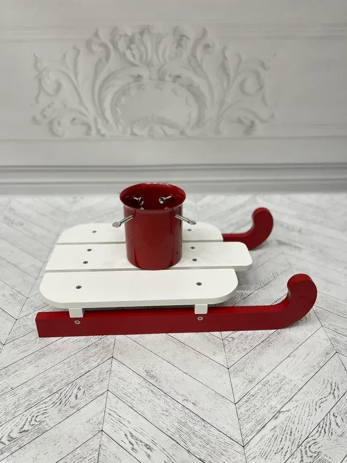 Эти милые саночки из дерева – комплимент креативным людям, обожающим необычные решения. Санки, выполненные в двух праздничных цветах – белом и ярко-красном и смотрятся очень нарядно. При взгляде на них просто невозможно не улыбнуться, а значит, новогодняя ночь пройдет на волне позитива. У этого аксессуара есть и другие достоинства – экологичность и, конечно же, отменное качество.