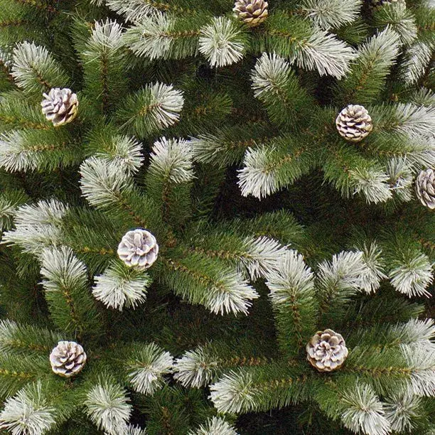 Приятное свойство придают прокрашенные белым цветом кончики ветвей. Благодаря этому елочка выглядит будто покрытая легким инеем в морозное утро. Представьте только как удивительно и необычно видеть это у себя дома, в тёплой уютной комнате. В качестве дополнительного декора на веточках расположены натуральные шишки. С ними Ваши гости не сразу смогут понимать, что ель искусственная, а не живая.