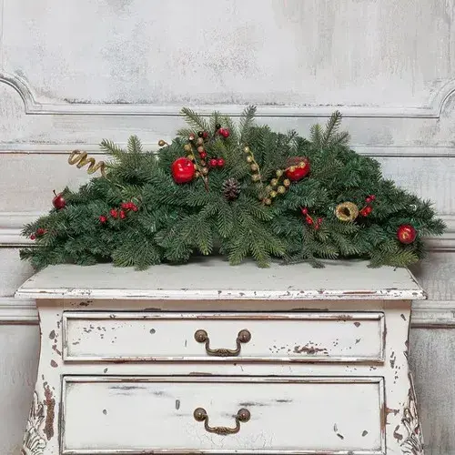 Подготовка к новому году - приятный процесс, многие считают его таким же увлекательным, как само празднование. Хвойный сваг «Богемия» от Российского производителя ЕлкиТорг - универсальный новогодний декор. Сваг можно использовать как внутри помещения, так и на улице. Богатство декора: фрукты, ягоды, веточки, завитки делают его поистине уникальным! Изделие поставляется со встроенной электрогирляндой на батарейке. Выглядит этот декоративный элемент, как волшебная луна, на которых живут сказочные существа.