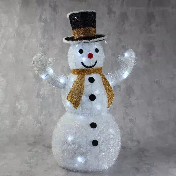 Этот жизнерадостный снеговик готов зажигать с вами всю ночь. Посмотрите, какой стильный красавец почтит вас своим присутствием! Но светодиодная фигура «Снеговик», выполненная из металла и текстиля, с белым свечением радует не только красивым, оригинальным дизайном, но и отменным качеством. Хотите ангажировать снеговика на следующий праздник? Не проблема! «Снеговик» будет с вами долгие годы. Материал: металл, текстиль.